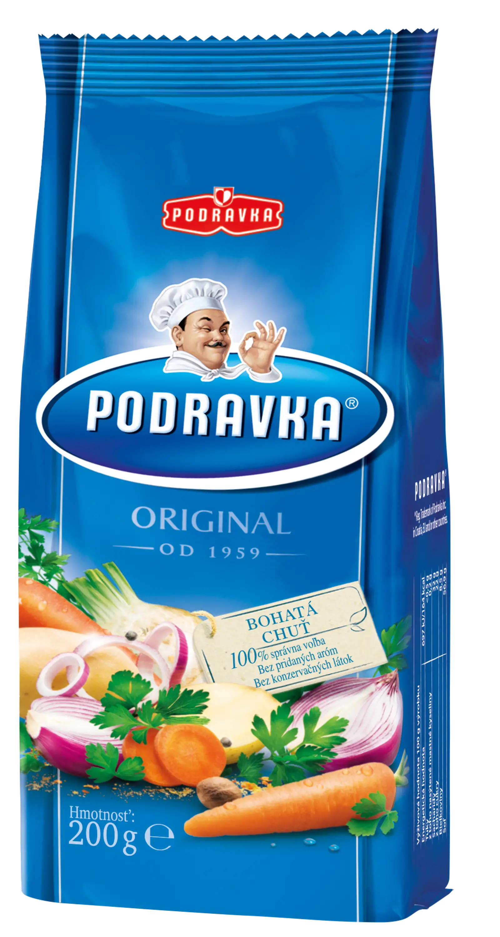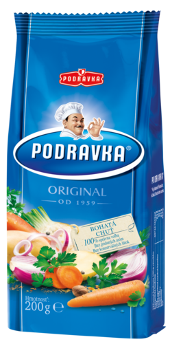 Pestrá zelenina, ktorá je zobrazená na prednej a zadnej strane obalu, po otvorení balenia, naplní vašu kuchyňu vôňou a bohatou chuťou. Symbol lyžičky s ochucovadlom, ktorý je úzko spätý so samotným výrobkom, je dôležitý prvok nového dizajnu. Logo Podravka sa taktiež nevyhlo príjemnej zmene, zmenil sa tvar loga, písmo a pozitívnou zmenou prešiel aj známy Podravka kuchár.